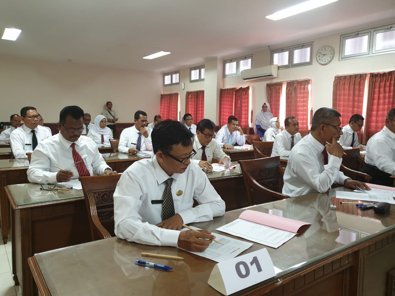 21 peserta Seleksi Terbuka Jabatan Pimpinan Tinggi (JPT) Pratama mengikuti uji kompetensi di Gedung FISIP Undip Semarang, Rabu (20/11). Dengan berpakaian putih hitam dan berdasi, mereka mengikuti pembukaan Uji Kompetensi yang dihadiri oleh anggota Panitia Seleksi Jumani, selaku Plt Kepala BKPP Pati.