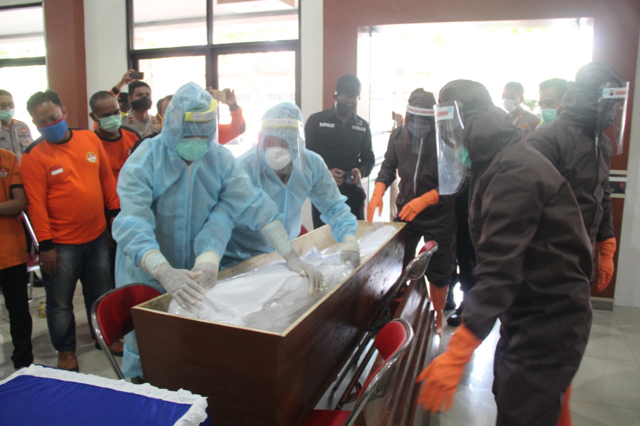 “Berkaca dari kekuranganya tenaga medis untuk Pemulasaran dan antisipasi adanya penolakan, maka anggota Polisi sebagai kekuatan cadangan, kita latih agar ada pengetahuan, keterampilan dan kompetensi sesuai SOP kesehatan,” Ungkapnya.