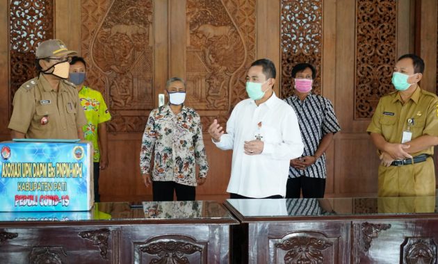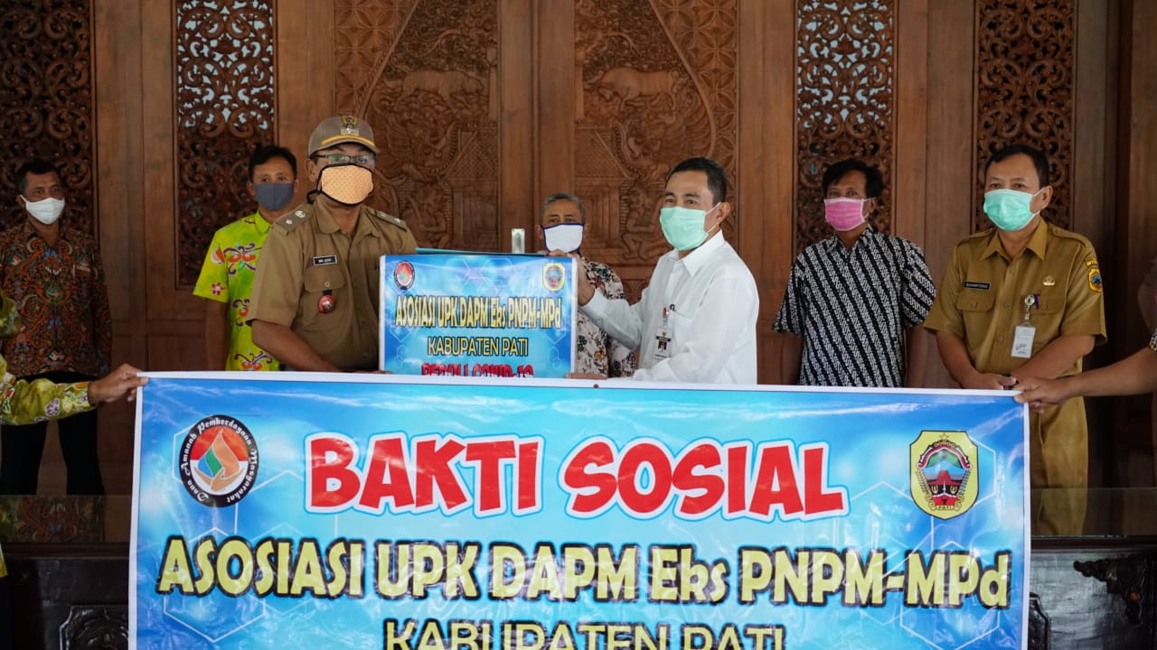Bertempat di Pendopo Kabupaten Pati, Haryanto menerima sejumlah perlengkapan Alat Pelindung Diri (APD) dari Asosiasi Unit Pengelola Kegiatan (UPK) Dana Amanah Pemberdayaan Masyarakat (DAPM) Eks PNPM Mandiri Perdesaan.