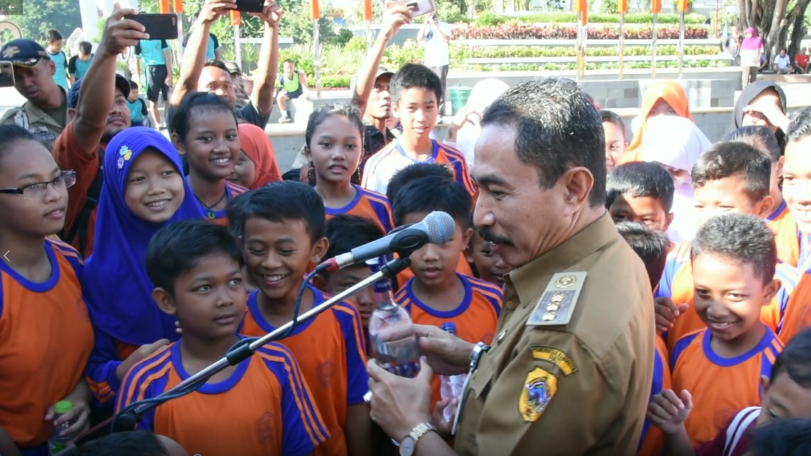 Haryanto pun memanfaatkan momentum itu untuk mengenalkan dan mengedukasi anak-anak pada botol-botol Miras yang hendak dimusnahkan.