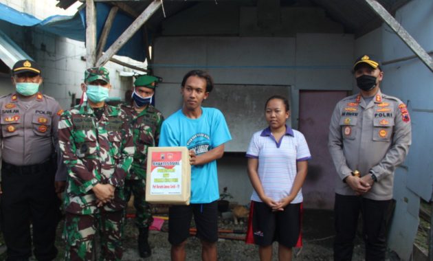 Kapolres Pati AKBP Arie Prasetya Syafa’at, SIK bersama Dandim 0718 Pati Letkol Czi Adi Ilham Zamani turun langsung door to door untuk membagikan sembako di lingkungan sekitar Polres yaitu di Desa Winong Pati.