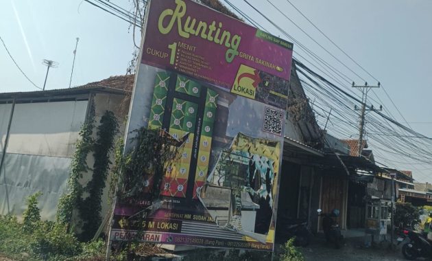 Banner tersebut tertuliskan promosi perumahan Runting griya sakinah dan banner tersebut juga terlihat sudah rusak dan robek. Pemasang banner seakan tidak menghiraukan bagi warga yang melintas di pertigaan tersebut. Warga yang akan melintas keluar menuju jalan raya maupun sebaliknya di pertigaan gang tersebut seakan terganggu dengan adanya pemasangan banner tersebut. Dan adanya banner tersebut sering menyebabkan kecelakaan di pertigaan tersebut.