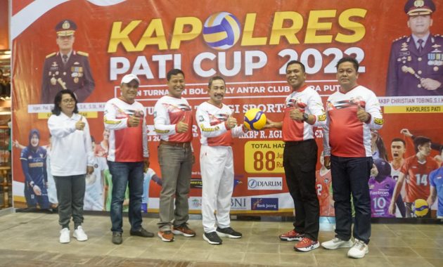 Kilaspersada.com Pati-Dalam rangka memeriahkan HUT Bhayangkara Ke-76 Tahun 2022 Polres Pati menggelar open Turnamen Bola Voli Putra Putri. Turnamen yang akan berlangsung mulai tanggal 24 – 31 Juli 2021 bertempat di GOR Pesantenan Pati, dan diikuti 24 tim bola voli dari dalam maupun luar daerah, yang terdiri 16 tim putra dan 8 tim putri.