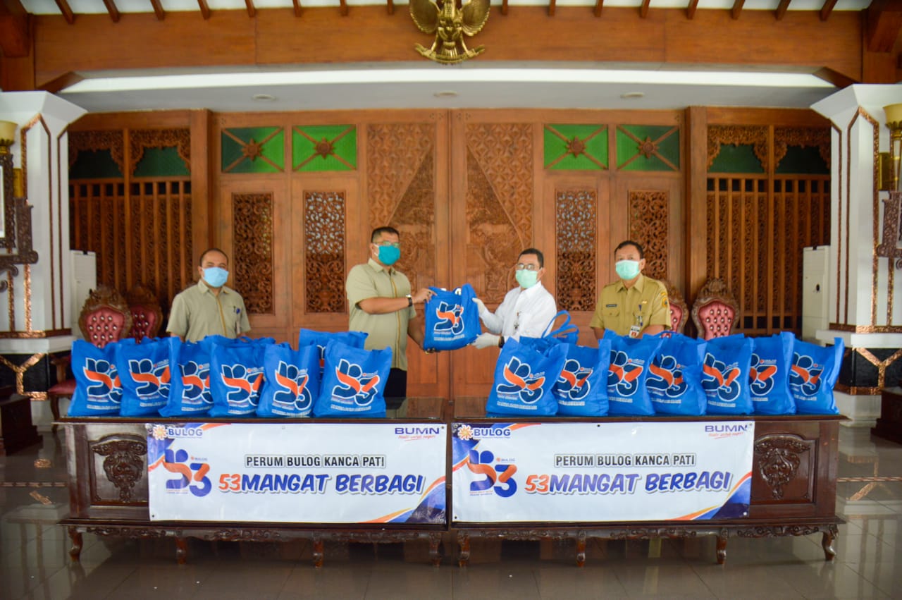 Bupati selaku Ketua Gugus Tugas didampingi Sekretaris Daerah Suharyono, menyampaikan rasa terima kasihnya atas kepedulian Bulog perwakilan Kabupaten Pati. Menurutnya apapun bentuk bantuan yang diberikan, sangat bermakna bagi masyarakat yang terdampak dengan Covid-19. Termasuk para perantau maupun yang terkena PHK.
