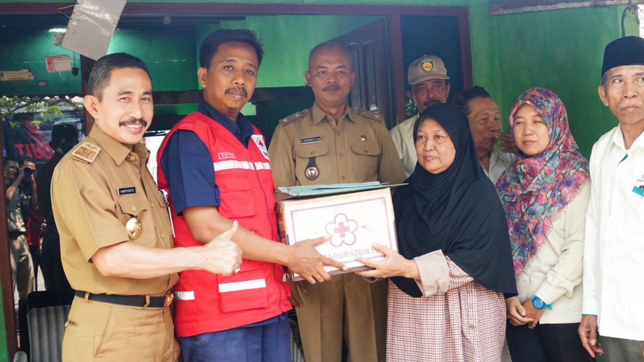 Bupati berkunjung untuk memberikan bantuan secara langsung yang berupa uang tunai dan kebutuhan lain yang berasal dari Baznas.