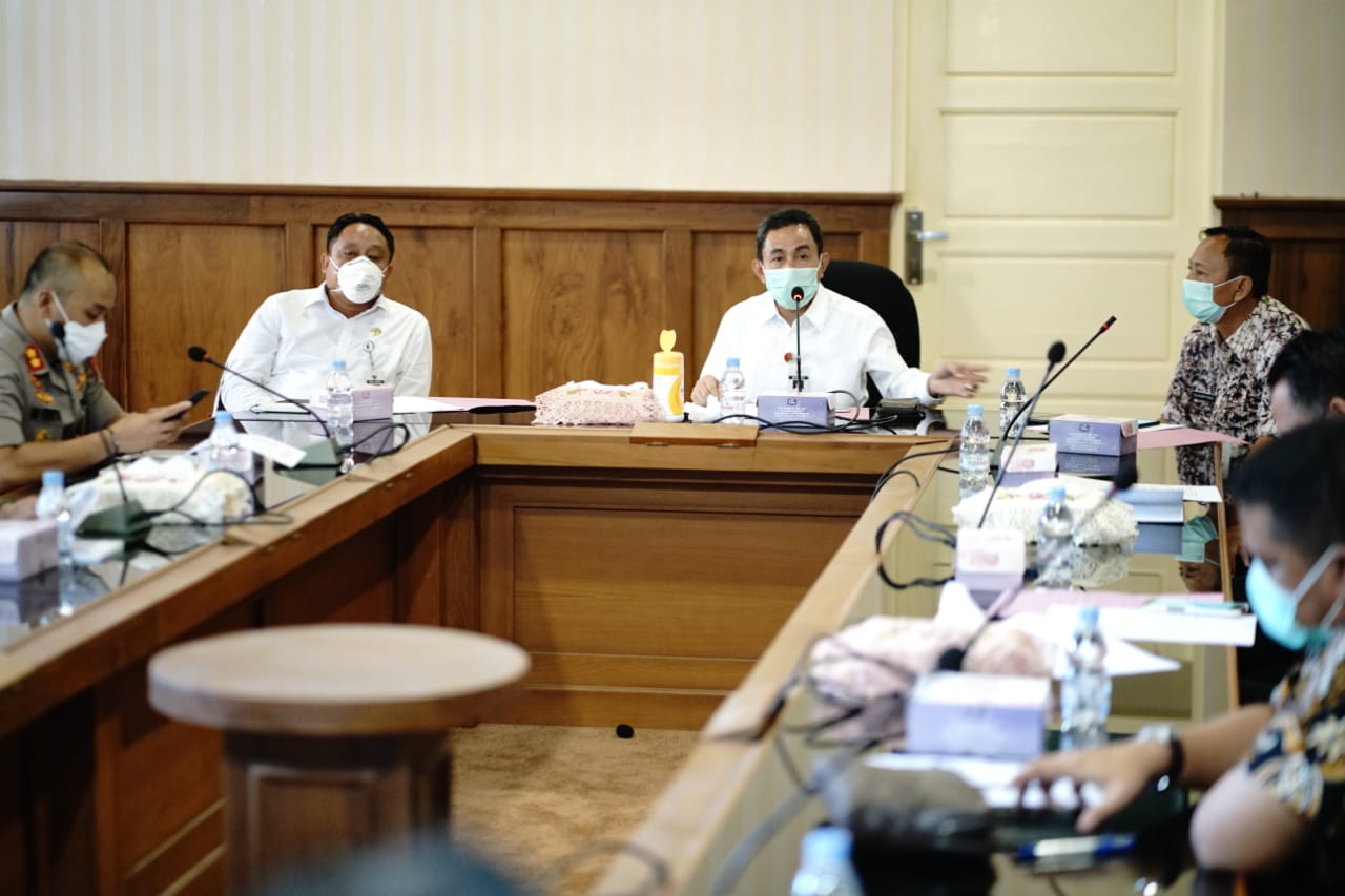 Pati – Kilaspersada.com, Bupati Pati Haryanto beserta Forkompimda dan instasi terkait, hari ini menghadiri rapat terbatas terkait kebutuhan bahan pokok masyarakat atau Kepokmas di tengah wabah Covid-19, di ruang Joyo Kusumo Setda Kabupaten Pati.