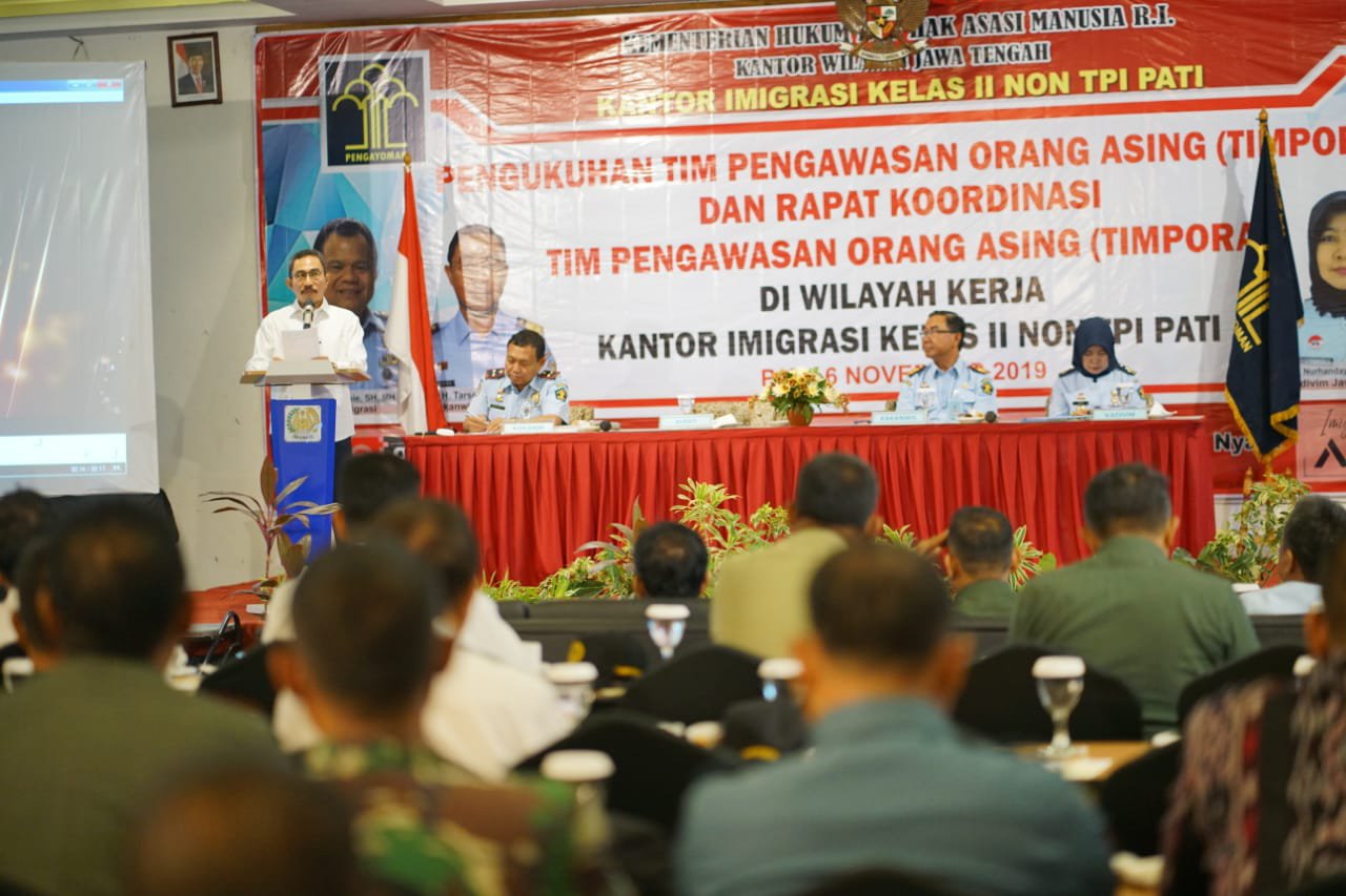 Pati – Kilaspersada.com, Bupati Pati Haryanto hari ini menghadiri Pengukuhan Tim Pengawasan Orang Asing (Timpora) serta rapat koordinasi Timpora di wilayah kerja Kantor Imigrasi Kelas II Non TPI Pati.