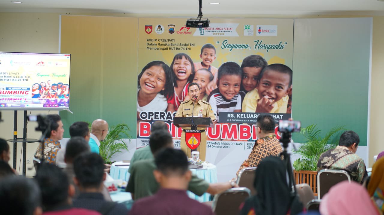Dengan tema “Senyummu Harapanku” operasi bibir sumbing ini diselenggarakan Kodim O718/Pati bekerja sama dengan RS KSH, Gusdurian Kabupaten Pati, PT Dua Kelinci dan RS Kariadi Semarang.