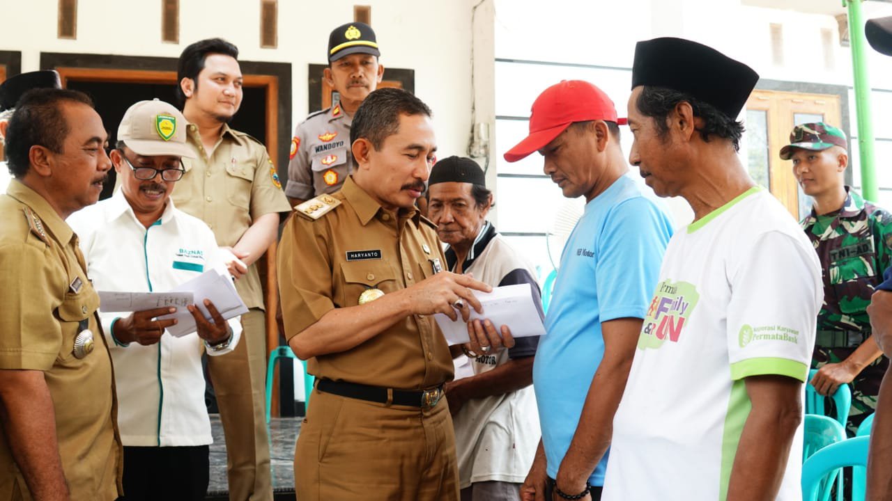 Pati – Kilaspersada.com, Bupati Pati Haryanto didampingi Baznas Pati dan PMI Cabang Pati, hari ini menyerahkan bantuan kepada 8 orang korban bencana puting beliung di Desa Wegil Kecamatan Sukolilo.