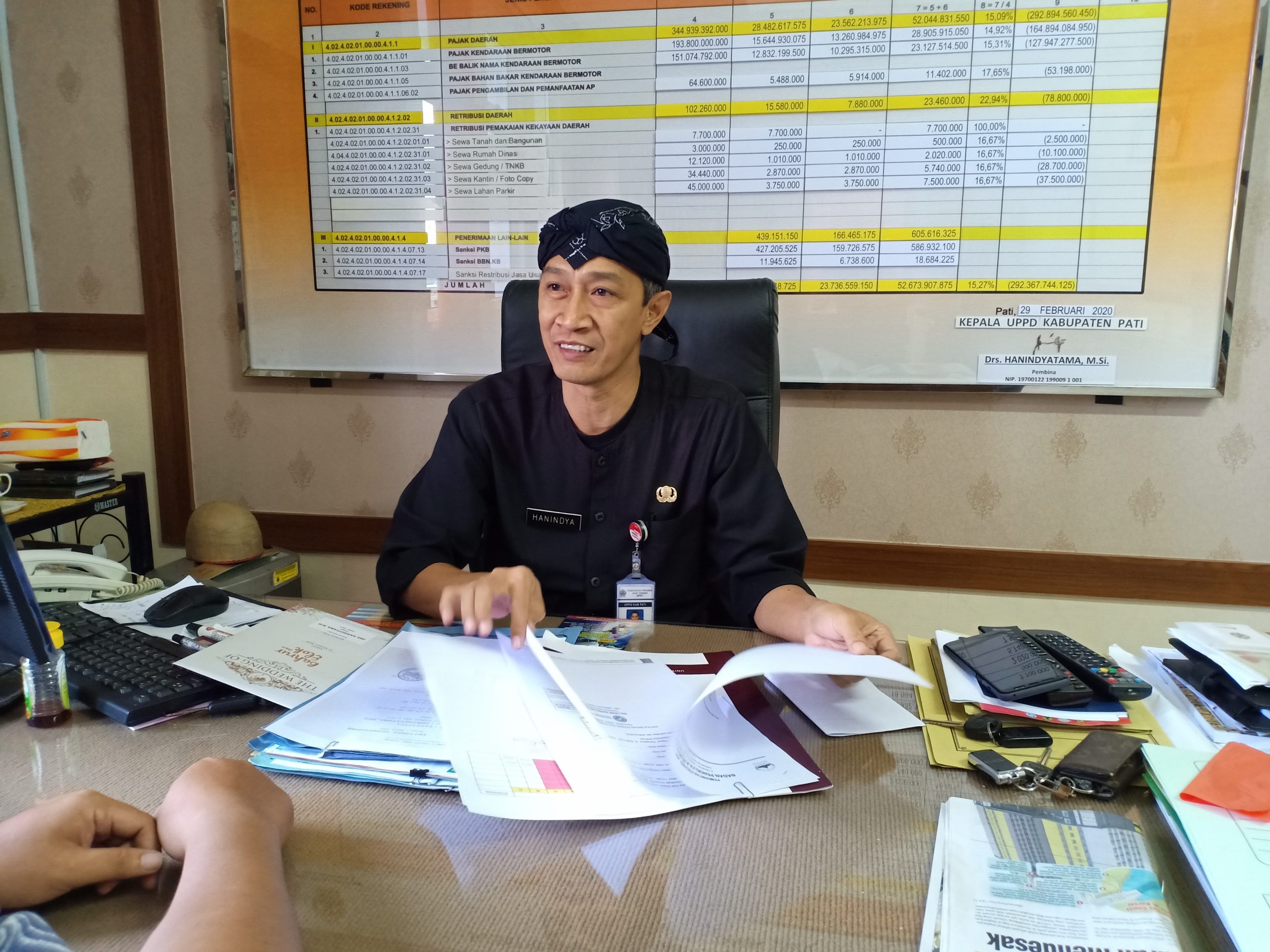 Kepala UPPD Kabupaten Pati Drs. Hanindyatama MSi., Menyampaikan kepada wajib pajak untuk tidak takut bayar pajak di Samsat Pati, Karena di Samsat sudah di sediakan alat-alat kebersihan seperti hand sanitiser, Masker, sarung tangan, untuk menghindari virus tersebut. Paling utama jaga kebersihan dan kesehatan, ungkap Hanin.