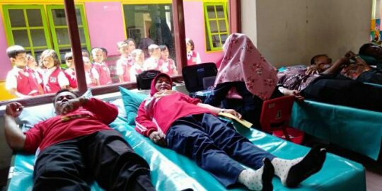 (Kegiatan bhakti sosial donor darah di gedung PGRI Klaten)