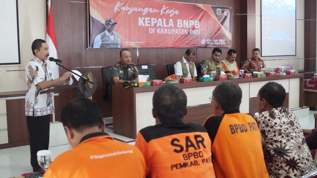 “Seperti kemarin di Sukolilo, hujan beberapa jam saja, tidak sampai berhari-hari, langsung banjir,” ucapnya ketika menyampaikan kata sambutan dalam Kunjungan Kerja Kepala Badan Nasional Penanggulangan Bencana (BNPB) Doni Monardo di Aula Kantor Kecamatan Kayen, Jumat (15/11).