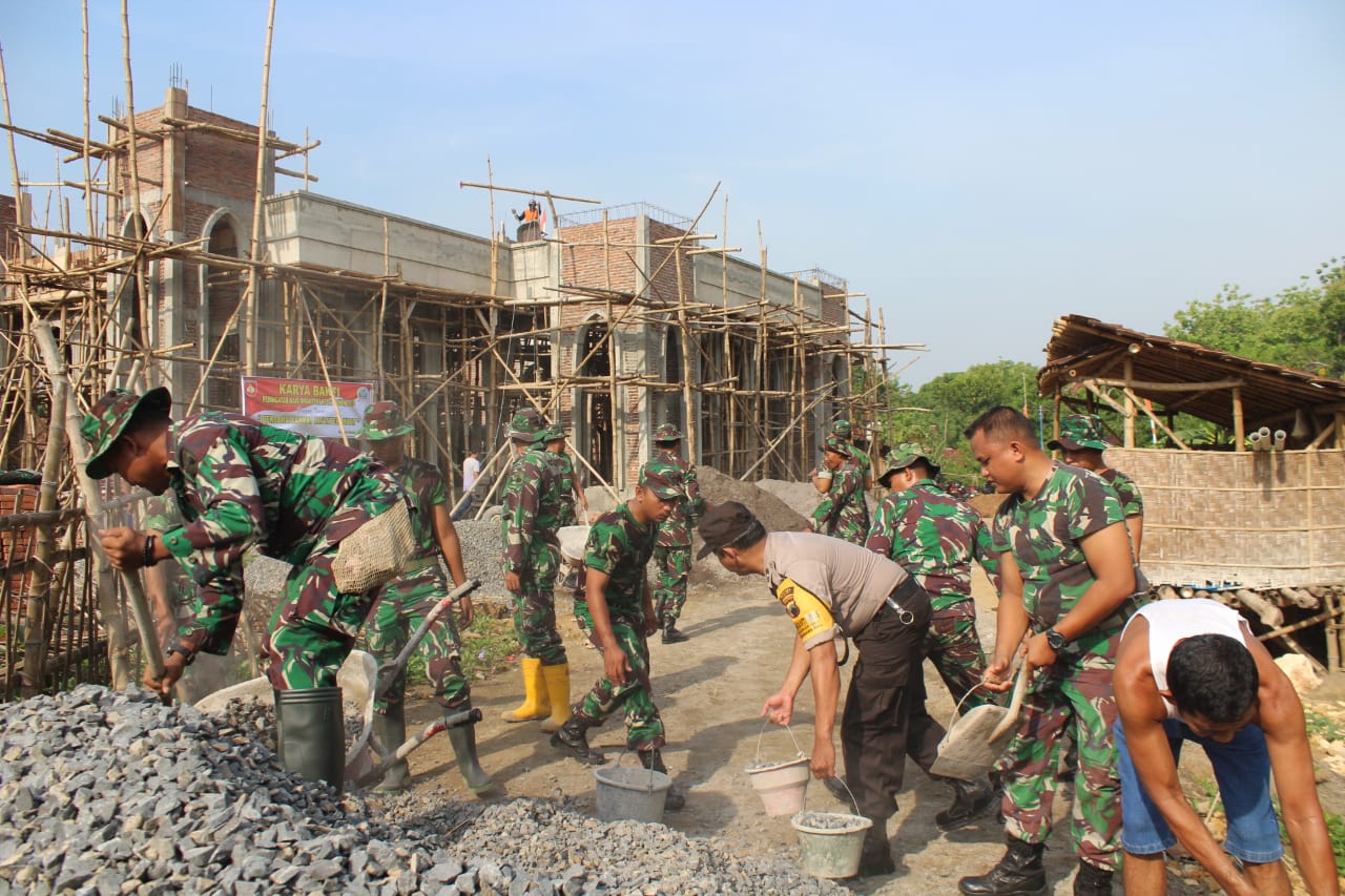 “Pekerjaan hari ini relatif ringan karena pengecoran atap masjid ini telah kita rampungkan sekitar seminggu lalu bersama warga desa Karangwono,”terang Danramil.