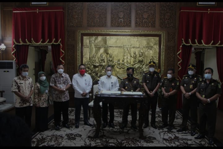 Pati – Kilaspersada.com, Kejaksaan Negeri Pati melakukan perjanjian kerjasama atau MoU (Memorandum of Understanding) bersama dengan Pemerintah Kabupaten Pati tentang Penanganan Masalah Hukum Bidang Perdata dan Tata Usaha Negara dalam Penyelenggaraan Pemerintahan di Kabupaten Pati.
