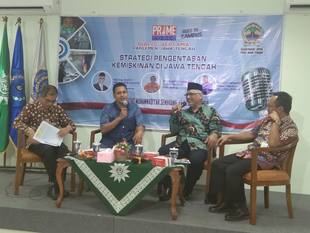 Saat menjadi salah satu narasumber Dialog bersama Parlemen dengan tema Strategi Pemgentasan Kemiskinan Di Jawa Tengah yang disiarkan langsung MNC. Trijaya FM di ruang 603-604 Gedung Fakultas Ekonomi Universitas Muhammadiyah Semarang (Unimus) Jalan Kedung Mundu Raya No 18 A, Kota Semarang, minggu lalu.