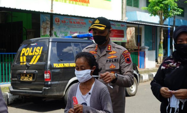 Kapolres Pati melalui Kasubbag Humas Iptu Suharning mengatakan pembagian nasi Bungkus, air Cup dan masker di bagi tiga kelompok secara Mobiling di lokasi sepanjang jalan di kota Pati, adapun sasaran pembagian yaitu Pengemudi Ojek On Line, Abang Becak dan Masyarakat Pati yang kurang beruntung.