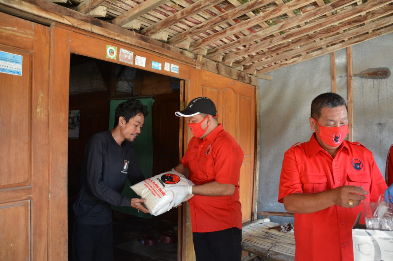 Bersama anggota DPRD Kabupaten Pati yang tergabung dalam fraksi PDI Perjuangan dan sejumlah relawan yang hadir, Ketua DPRD Ali Badruddin membagikan paket sembako dan masker di beberapa titik yang ada di wilayah Kecamatan Kayen.