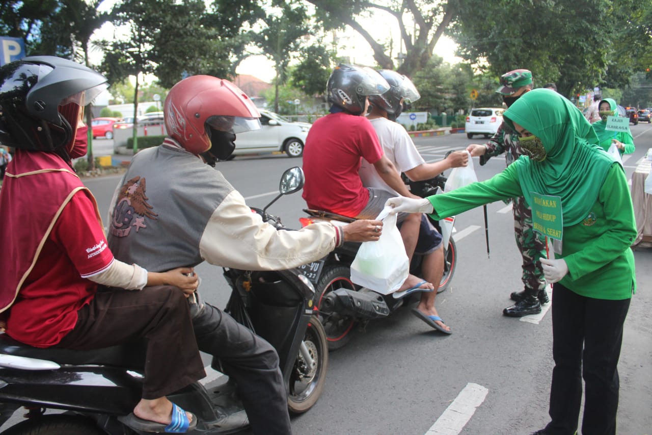 Selain pembagian paket sembako yang dilaksanakan pagi tadi di kecamatan Wedarijaksa, Persit Cabang XXXIX juga mengadakan kegiatan sosial berupa pembagian 100 nasi kotak dan takjil kepada para pengguna jalan, tukang becak, driver ojek online dan pengguna jalan yang kebetulan melintas didepan Markas Kodim 0718/Pati sore hari tadi menjelang waktu berbuka puasa.