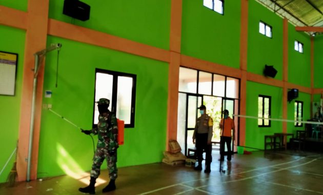 Pati – Kilaspersada.com, Ditengah mewabahnya pandemi virus Covid-19 yang sudah mulai masuk ke berbagai pelosok daerah. Babinsa dan Bhabinkamtibmas Desa Tlogorejo, Kecamatan Jakenan, Pati Serma Nur Khamid dan Bripka M. Rifqi Kurniawan, terus berupaya melawan penyebaran Virus Covid19. Salah satunya dengan melakukan penyemprotan Disinfektan di lingkungan tempat umum desa setempat. Rabu, (29/04/2020).