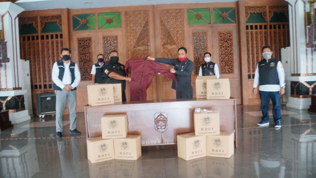 Pati – Kilaspersada.com, Bertempat di Pendopo Kabupaten Pati, hari ini (20/4), Pemkab Pati kembali menerima bantuan Alat Pelindung Diri (APD) dari Harley Davidson Club Indonesia (HDCI) Karesidenan Pati, sejumlah 70 pcs untuk tenaga medis yang bertugas menangani Covid-19.
