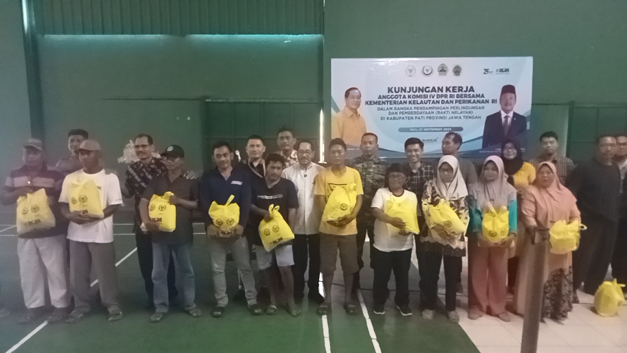 Kunjungan Kerja Komisi IV DPR RI bersama Kementrian Kelautan dan Perikanan RI (KKP) RI ke Juwana Kecamatan Juwana Kabupaten Pati, dalam rangka Pendampingan Perlindungan dan Pemberdayaan ( Bhakti Nelayan ) bersama nelayan di Kabupaten Pati .Berlangsung di GOR Desa Bakaran Kulon Jum,at (27/09/2024).Pagi.