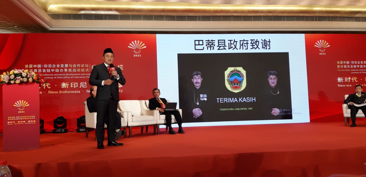 Internasional – Kilaspersada.com, Wakil Bupati Pati Saiful Arifin berkesempatan memaparkan Potensi Investasi Pati dihadapan para investor Tiongkok dalam “China Business Forum” di China World Hotel Beijing pada 18-19 November 2019.