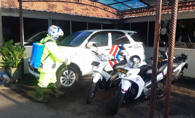 Semua kendaraan dinas Satlantas Polres Pati kita semprot dengan cairan disinfektan dan kemudian kendaraan tersebut dijemur di halaman Mako Satlantas Polres Pati, ungkap Muffid.