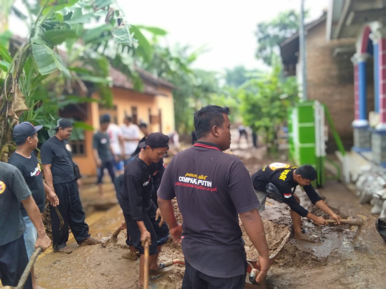 Pati – Kilaspersada.com, Pasca Bencana bedahnya tanggul di Desa tunjungrejo kecamatan Margoyoso hingga saat ini masih meninggalkan sisa sisa lumpur yang sangat tebal,di Hari ke 4 pasca bencana saat ini giliran pasukan pencak silat Cempaka putih Cabang Pati di bawah asuhan Agus dan di pandegani langsung ketua Pengda Jateng H. Ismunardi, SH. (Rabu/8/1/2020)