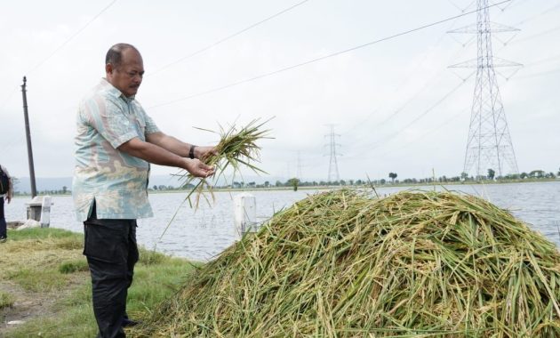 Pj Bupati juga menyampaikan keprihatinannya terhadap petani yang terpaksa memanen dini akibat banjir, dengan padi yang tidak optimal.