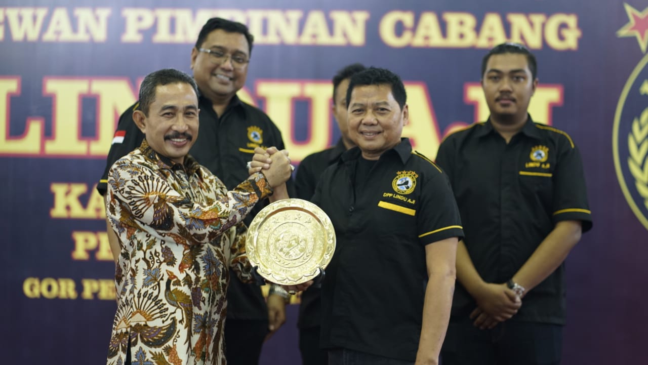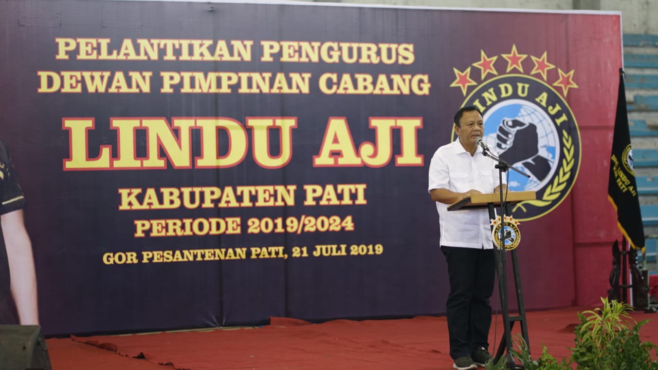 Pati – Kilaspersada.com, Bupati Pati Haryanto bersama Sekretaris Daerah Kabupaten Pati Suharyono menghadiri Pelantikan Dewan Pimpinan Cabang Lindu Aji Kabupaten Pati, Minggu (21/07) di GOR Pesantenan Pati.