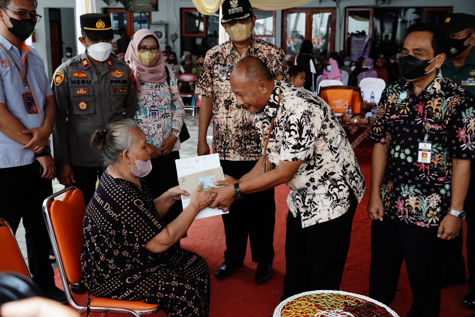 Dengan didampingi Kepala DINSOSP3AKB Kabupaten Pati Indriyanto, Pj Bupati menyerahkan BLT dana kompensasi BBM tahap pertama secara simbolis.