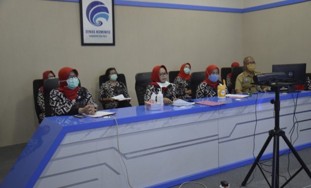 Ketua TP PKK Kabupaten Pati Musus Indarnani Haryanto didampingi Wakil Ketua Umamah Saiful Arifin beserta pengurus kabupaten, mengikuti arahan dari PKK Provinsi Jawa Tengah di ruang Command Center Kabupaten Pati.