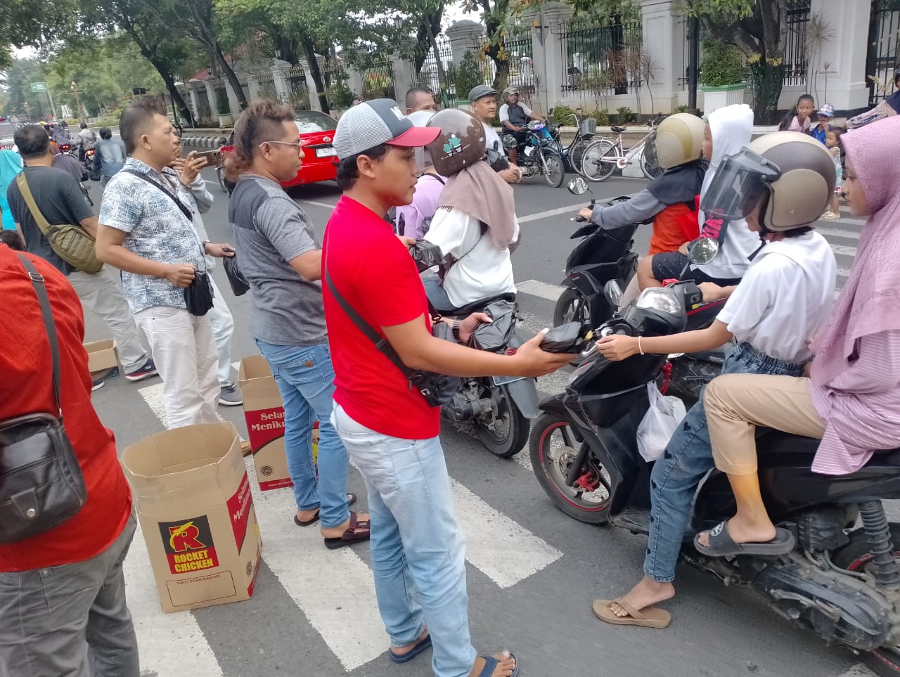 Kilaspersada.com Pati – Bertempat di depan Gedung Dewan Perwakilan Rakyat Daerah (DPRD) Kabupaten Pati, aliansi jurnalis yang tergabung dalam Forum Wartawan Pati (FWP) membagikan sebanyak 200 bungkus takjil kepada pengguna jalan, Jumat 5 April 2024.