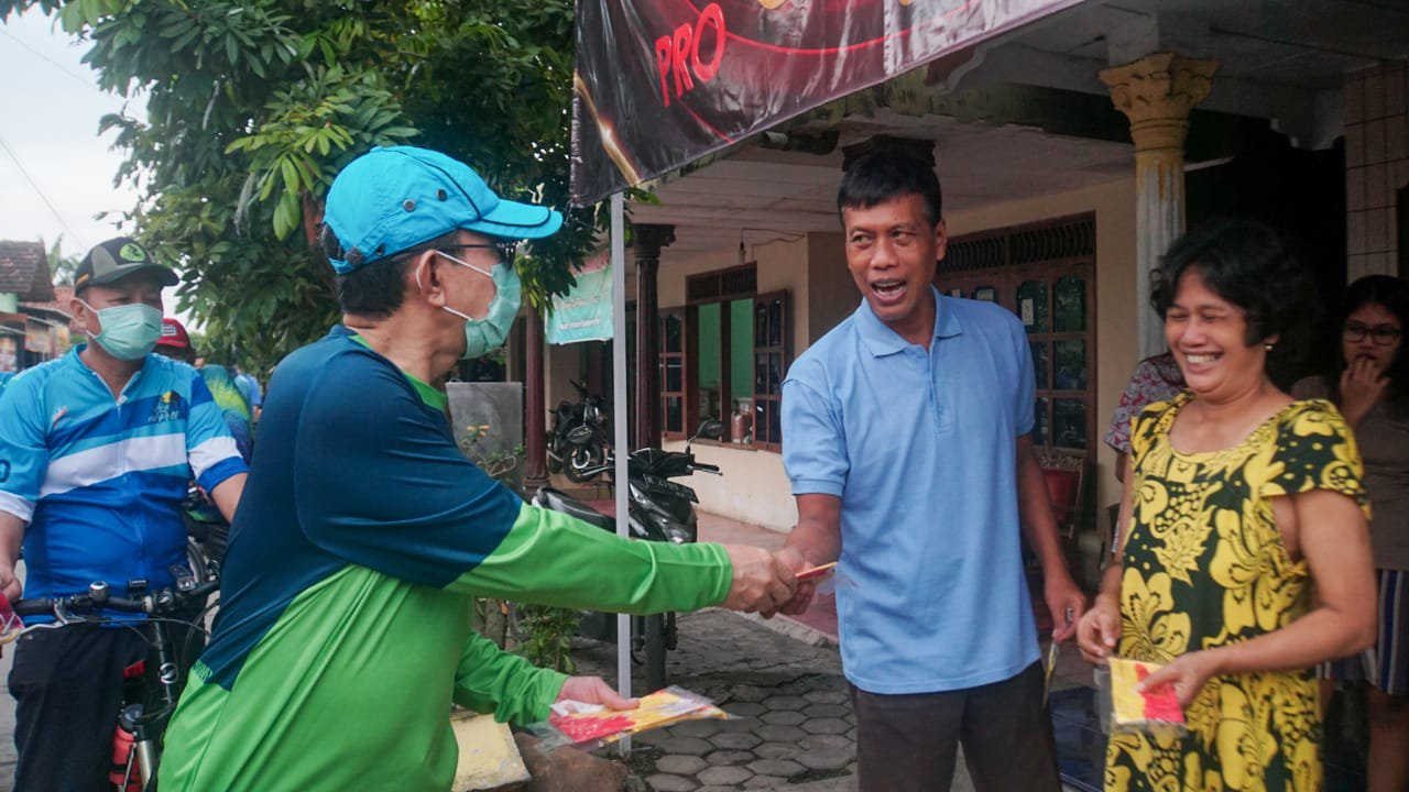Pati- Kilaspersada.com, Bupati Pati Haryanto selalu memberikan edukasi kepada warga untuk disiplin dalam melaksanakan protokol kesehatan. sambil berolahraga sepeda bersama Sekda dan beberapa Kepala Organisasi Perangkat Daerah (OPD), Bupati berkeliling ke desa-desa, sambil membagi masker sekaligus mengingatkan warga untuk selalu memakai masker saat berada di tempat umum, Senin (1/6)”Itu karena masker adalah salah satu cara untuk mencegah penyebaran wabah Covid-19. Di samping itu juga harus diikuti perilaku hidup sehat dengan sering mencuci tangan dengan sabun dan selalu jaga jarak,”jelasnya.Ketika pemerintah menerapkan new normal, menurut Haryanto, masyarakat juga harus bisa mengikuti dan beradaptasi. “Kita harus terbiasa, agar rantai penularan wabah Covid-19 dapat terputus. Untuk itu diharapkan seluruh warga selalu disiplin selalu disiplin menerapkan protokol kesehatan,”tegas BupatiDalam kegiatan ini, Haryanto pun menyempatkan diri untuk turun dari sepeda dan menjumpai warga. Sambil membagi masker, Bupati selalu berpesan agar masyarakat selalu mengikuti anjuran pemerintah.Adapun rute yang dilewati Bupati berserta Kepala OPD yaitu mulai dari Pendopo Kabupaten menuju Desa Kemiri, Payang, Runting dan Sidokerto. “Maturnuwun Pak Bupati. Lumayan dari pada beli, saya diberi lima. Satu untuk saya pakai, dan yang lain bisa digunakan anak anak di rumah,”ucap Surti, salah satu warga yang ditemui.(Hms/Dik)