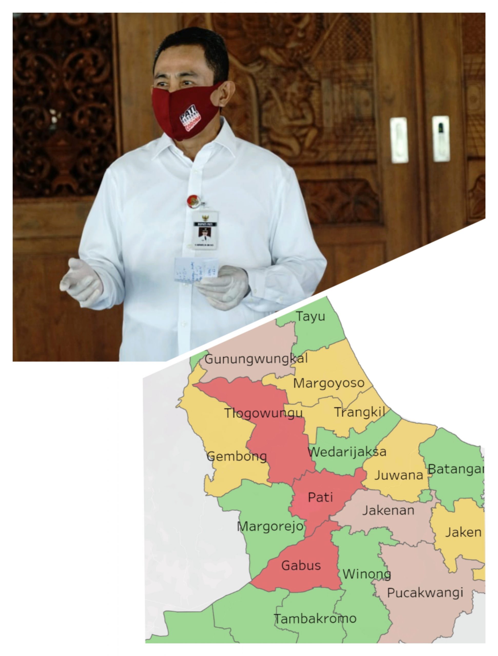 Pati – Kilaspersada.com, Bupati Pati Haryanto selaku Ketua Tim Gugus Tugas Percepatan Covid-19 kembali memberikan update penanganan Covid-19 di Kabupaten Pati, Minggu (26/4) pukul 16.00, sesuai data yang dirangkum Dinas Kesehatan Kabupaten Pati.