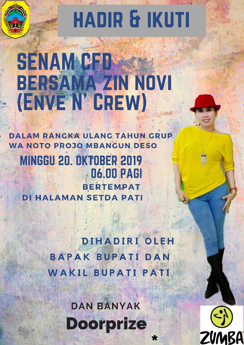 Pati – Kilaspersada.com, Bebarengan dengan kegiatan CFD, Komunitas grub watshap Noto Projo Mbangun Deso merayakan HUT yang Ke-2. Sesuai kegiatan CFD Komunitas WAG Noto Projo Mbangun Deso ini di HUT-nya akan mempersembahkan hiburan dan Senam serta lomba-lomba menarik. minggu pagi, 20 Oktober 2019 di area halaman Setda Pati, Komunitas WAG (Watshap Grub) ini akam menunjukkan kepeduliannya dan kiprahnya mengajak semua warga Pati untuk berolahraga menuju hidup sehat.