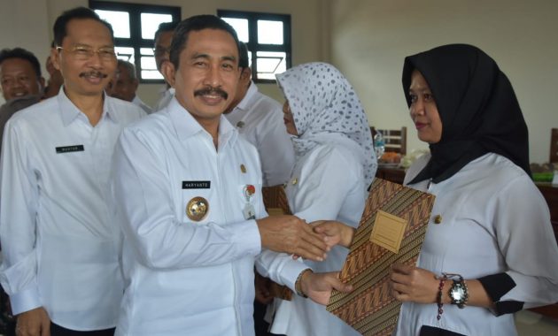 Bupati Haryanto berkesempatan memberikan pengarahan sekaligus menyerahkan SK Penjabat Kepala Desa di Kecamatan Winong, yang dilaksanakan di Kantor Kecamatan Winong, Rabu (22/1).