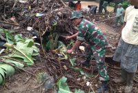 Antisipasi Air Sungai Langkir Bibis Meluap, Danramil Margorejo Beserta Relawan Bersihkan Sampah di Sungai