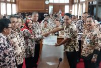 Pati – Kilaspersada.com, Penandatanganan pakta integritas dan penyerahan Dokumen Pelaksanaan Anggaran SKPD dilaksanakan di ruang Pragola Setda Pati, Kamis (2/1/2020). Bupati Pati didampingi Waki...