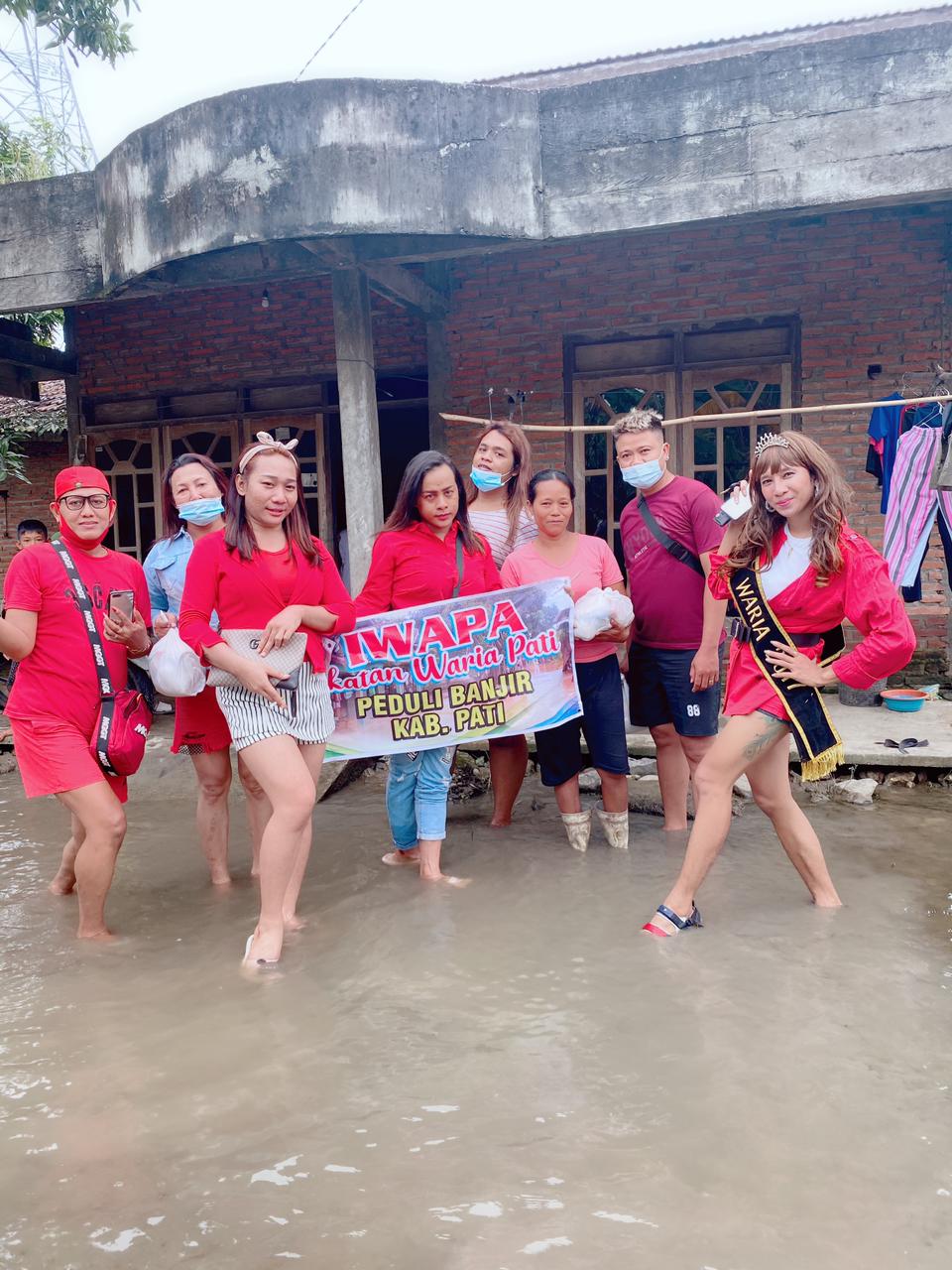 Kali ini aksi sosial yang di lakukan puluhan waria ini lain dari pada yang lain. Selain bagikan ratusan paket sembako ke warga terdampak banjir, para waria ini juga unik dengan mengenakan busana khas. Hal ini bertujuan agar bisa menghibur para warga terdampak bisa tersenyum lepas saat melihat aksi yang dilakukan komunitas IWAPI.