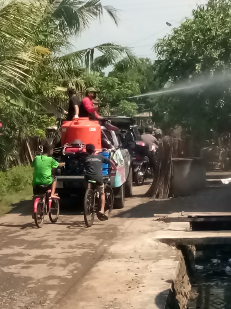 Pati – Kilaspersada.com, Masih dalam misi basmi Pagebluk Corona, Relawan DGP semprotkan cairan disinfektan diberbagai wilayah di kecamatan Margoyoso, Juwana, dan Wedarijaksa. Jum’at (18/06).