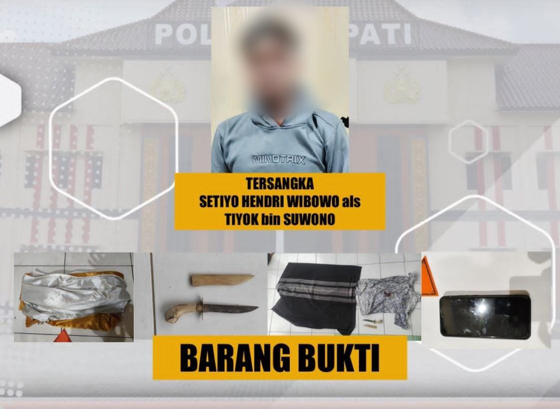 Kilaspersada.com Pati- Polresta Pati – Polda Jateng –  Polisi tidak butuh waktu lama untuk menangkap SH (26) Warga Dukuh Srumbat Desa Giling Kecamatan Gunungwungkal Kabupaten Pati, Terduga pelaku penusukan dengan senjata tajam terhadap korban Suratman (56), hingga meninggal dunia.