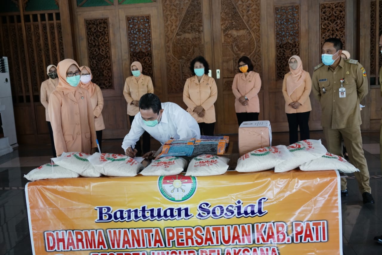 Bupati Pati saat menerima bantuan tersebut, bersama Wakil Bupati dan Sekda Pati mengungkapkan apresiasinya kepada Dharma Wanita Persatuan Kabupaten Pati.