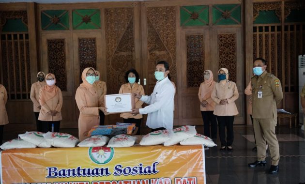 “Saya selaku Ketua Gugus Percepatan Penanganan Covid-19 mengucapkan terima kasih kepada ibu Ketua Dharma Wanita Persatuan Kabupaten Pati Ny Suharyono beserta jajarannya yang telah peduli dan ikut membantu penanganan covid-19,” ujarnya.