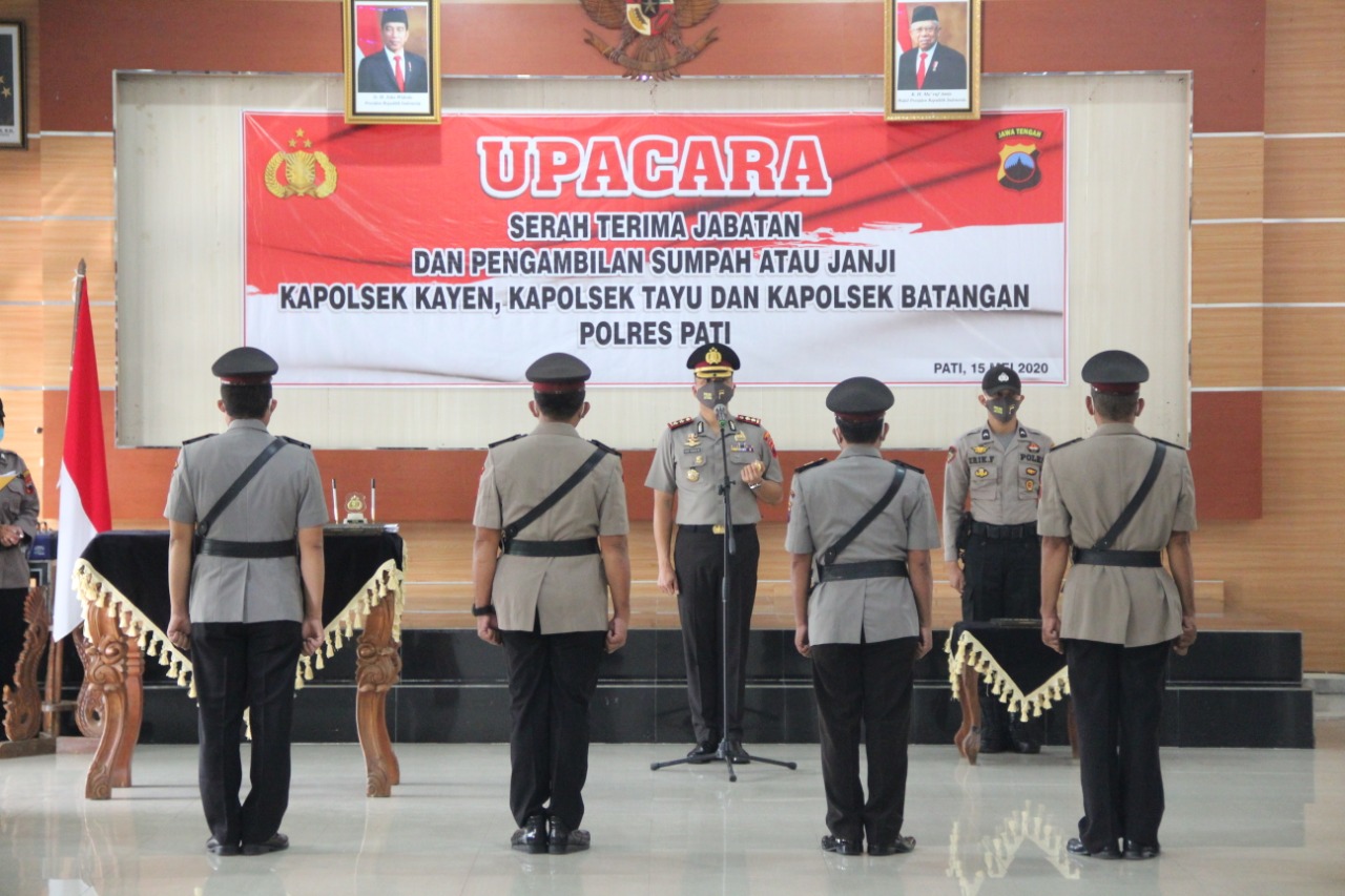 Ketiga pejabat tersebut adalah Kapolsek Kayen Polres Pati dari AKP Tejo Pramono, S.H. diserahkan kepada AKP Sayadi. Kapolsek Tayu Polres Pati dari AKP Sayadi diserahkan kepada IPTU Lilik Supardi, S.H. Kapolsek Batangan Polres Pati dari IPTU Lilik Supardi, S.H. diserahkan kepada IPTU Sukarno, S.H., M.H.