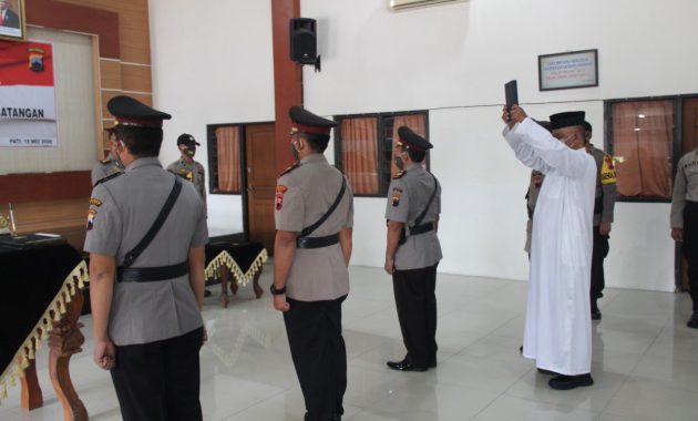 Pati – Kilaspersada.com, Kepala Kepolisian Resor (Kapolres) AKBP Arie Prasetya Syafa’at, S.I.K melantik tiga Kapolsek yang akan ditugaskan di Kecamatan Kayen, Tayu dan Batangan. Pelantikan berlangsung dalam upacara serah terima jabatan dan pengambilan sumpah atau janji di gedung Mantab Brata Polres Pati, Jumat (15/05/2020).