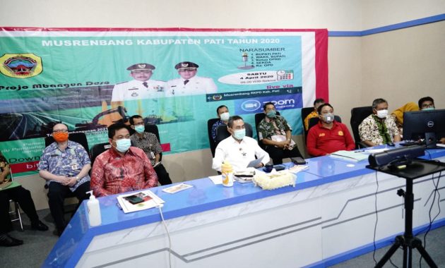 Pati – Kilaspersada.com, Bupati Pati Haryanto kembali menyampaikan perkembangan covid-19 di Kabupaten Pati. Informasi ini ia sampaikan usai mengikuti video teleconference Musyawarah Rencana Pembangunan (Musrenbang) Kabupaten Pati tentang Rencana Kerja Perangkat Daerah (RKPD) tahun 2021 di ruang Command Center Kabupaten Pati, Sabtu (04/04/20).